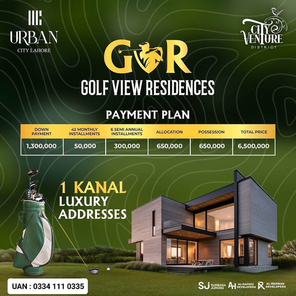 Urban City Lahore is offering Golf Course Facing Luxury One Kanal Plots in Golf View Residences at Prime Location of Lahore